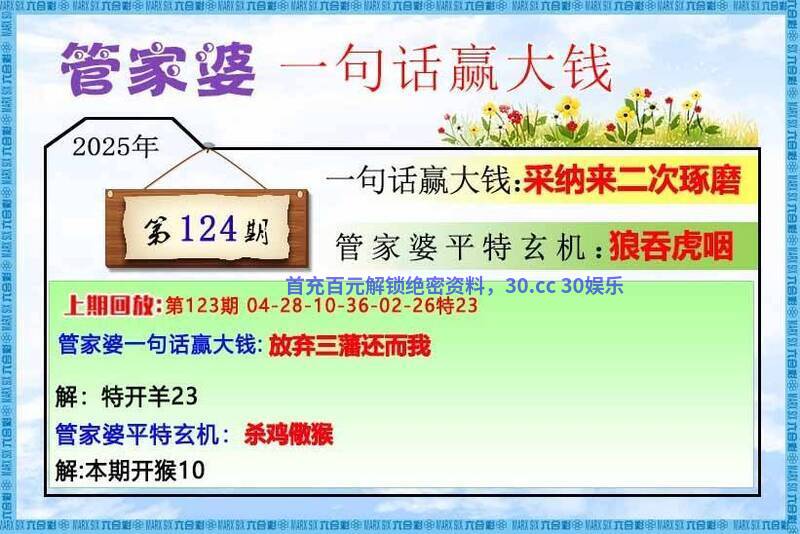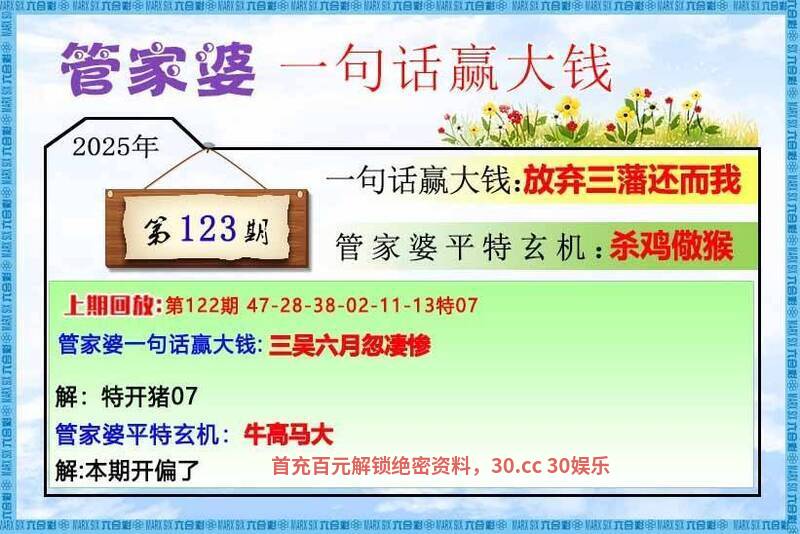 126期:管家婆一句话赢大钱:【兴五旺六有路跟】 解释:兴五旺六有路跟,解吉美生肖兔龙蛇马羊鸡 特肖:龙鼠虎鸡猪羊 ![]() |